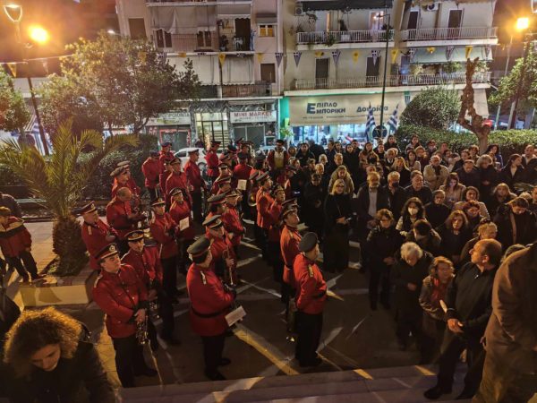 Στο γλυκύ λιόγερμα εχθές φάνταζαν επιβλητικά, οι χρυσοπόρφυροι δικέφαλοι αετοί του Βυζαντίου – που σημαιοστόλιζαν τον ναό – και πρόσφεραν μοναδική ανάταση στους χριστια-νούς, που αντλούσαν ακένωτες ηθικές δυνάμεις, από το πνευματικό θάμπος και το ηθικό φέγγος της ορθόδοξης εκκλησίας μας, αλλά και την πνευματική μεγαλουργία του Βυζαντίου. Μετά τον εσπερινό του οποίου χοροστάτησε ο ευλαβής Επίσκοπος Ρωγών κ.κ. Φιλόθεος, συνεπικουρού-μενος από τον ευσεβή προϊστάμενο του ναού πατέρα Νικόλαο Μαρκαντώνη, αλλά και από άλλους ιερείς από γειτονικές εκκλησίες, που προσήλθαν να τιμήσουν την σεπτή μνήμη των τρεισμεγίστων φωστήρων, επακολούθησε εκλιτάνευση της ιεράς εικόνας των τριών ιεραρχών, στους παρακείμενους δρόμους της εκκλησίας. Και κατάφορτοι από συγκίνηση οι κάτοικοι των πολυκατοικιών, έραιναν τους τρείς μεγίστους ιεράρχες μας, με ροδοπέταλα και μύρα, εκφράζοντας ευλαβικά την πίστη και τον σεβασμό τους, στους στυλοβάτες των γραμμάτων μας. Στην πομπή συμμετείχε η Φιλαρμονική του Δήμου Αθηναίων, που σκόρπισε με τους γλυκείς παιάνες της, τα πιο χαρμόσυνα μηνύματα, στο χριστεπώνυμο πλήθος και λάμπρυνε ηθικά, την κατανυκτική εορτή.