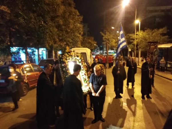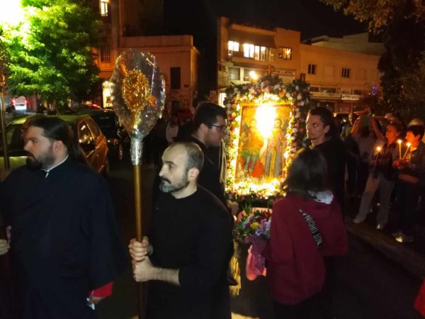 Η πομπή επιστρέφοντας στον ναό των Αγίων Ασωμάτων, έκλεισε με έναν εμπνευσμένο χαιρετισμό του σεπτού πατρός Ιγνατίου, που διαβίβασε τις ολόθερμες ευχές και ευλογίες για την ιερή ημέρα, του σεπτού Αρχιεπισκόπου μας κ-ου Ιερωνύμου, αλλά και το παιάνισμα του Εθνικού μας Ύμνου από την Φιλαρμονική του Δήμου Αθηναίων, που επικουρούσε με τα χαρμόσυνα μουσικά κομμάτια-λιτανείες της την εορτή.
