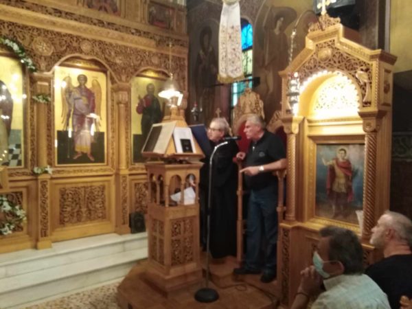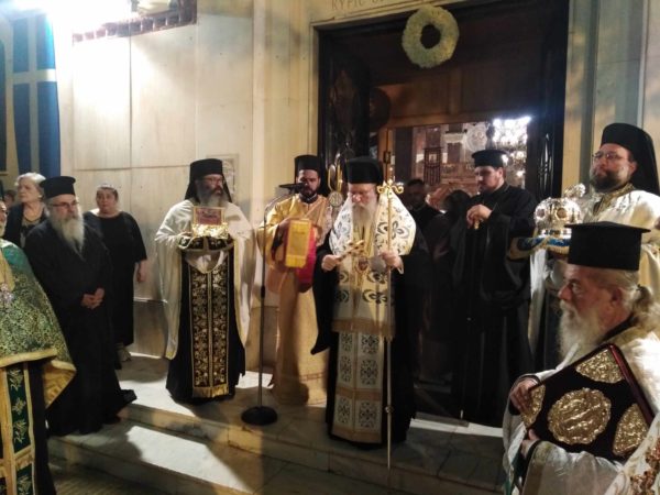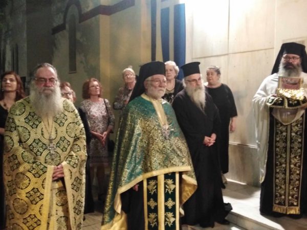 Με την επάνοδο στον ναό τον λόγο έλαβε ο σεπτός Επίσκοπος Ανδρούσης κ.κ. Κωνστάντιος, ο οποίος αφού διαβίβασε το μήνυμα αγάπης και ευλάβειας του Αρχιεπισκόπου Αθηνών και πάσης Ελλάδος κ.κ. Ιερωνύμου, εξήρε το χριστιανικό ήθος, την σεμνότητα και την εγκράτεια της Οσίας Ματρώνας, στις αξίες και τις αρετές του ασκητικού βίου. Στην αντιφώνησή του ο ευλαβής προϊστάμενος του ναού, Πατέρας Νικόλαος Καββαδίας, ευχαρίστησε τον σεπτό επίσκοπο που τίμησε με την παρουσία του την πανήγυρη, το χριστεπώνυμο πλήθος που με τόση ζέση καρδιάς και ευλάβεια προσήλθε για να τιμήσει την μνήμη της Αγίας, τη Φιλαρμονική του Δήμου Αθηναίων που εμπλούτισαν αισθητικά την ιερά λιτανεία, αλλά και την Ελληνική Αστυνομία, για την άψογη τήρηση των μέτρων τάξης, κατά την εκφορά της εικόνος.