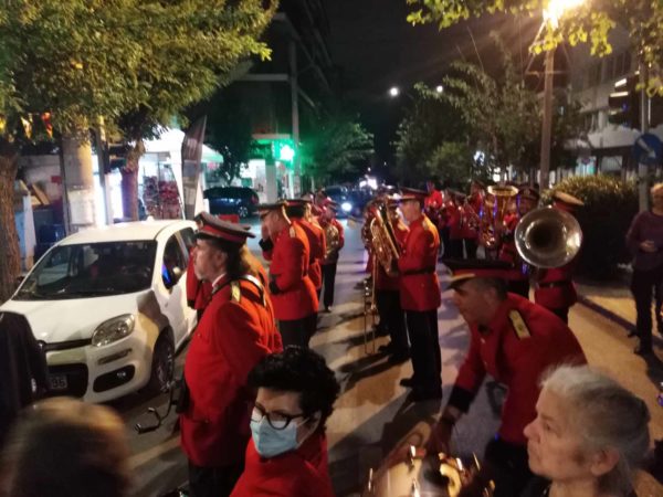 Με το πέρας της λειτουργίας, επακολούθησε εκλιτάνευση της ιεράς εικόνος της Αγίας, στους παρακείμενους δρόμους του ναού, υπο τους γλυκείς παιάνες της Φιλαρμονικής του Δήμου Αθηναίων, που προσέδωσε ξεχωριστό χρώμα στην πομπή. Σε κλίμα ηθικής έξαρσης οι κάτοικοι των πολυκατοικιών, στους δρόμους της πομπής, για την άχραντη μνήμη της Οσίας Ματρώνας, που έραιναν ένδακρεις την σεπτή εικόνα της, με μύρα και ροδοπέταλα.