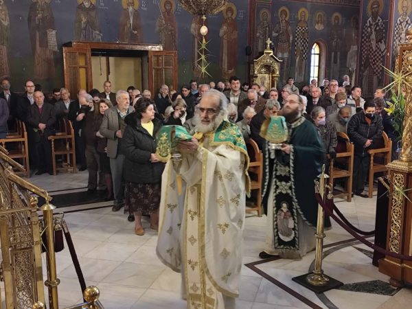 Με το πέρας της πανηγυρικής λειτουργίας, ο ευλαβής Πατέρας κ.κ. Πλάτωνας, ευχήθηκε από καρδιάς σε όλους Χρόνια Πολλά και η ευλογία του Χριστού, από την ιερή ημέρα της Κυριακής των Βαΐων, που ουσιαστικά εκκινούν τα άγια πάθη του, να σκέπει όλους τους Χριστιανούς και τις ευλαβείς οικογένειές τους. Συνακόλουθα ευχήθηκε σε όλους, με καθαρή καρδιά και την κατάνυξη που υπαγορεύουν τα άγια πάθη του κυρίου, να προσέλθουν ηθικά στην Μεγάλη Εβδομάδα και με την ορθόδοξη σεμνότητα και ευσέβεια, να προετοιμαστούν ηθικά, για την πνευματική τους ανάβαση, στο κορυφαίο γεγονός της Αναστάσεως.