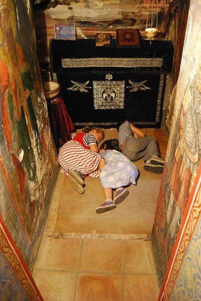 Ένα μικρό παιδάκι (5 ετών) την ώρα του σεισμού της 4ης Μαρτίου έπαιρνε αγκαλιά το μικρό του αδερφάκι (3 ετών) και του έλεγε: «Μην φοβάσαι, η Παναγίτσα μας θα μας προστατέψει…Να κοίτα την εικόνα της, πώς μας κοιτάει, μας αγαπάει και θα μας βοηθήσει… Και τον παρότρυνε να κάνουν τον Σταυρό τους.