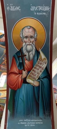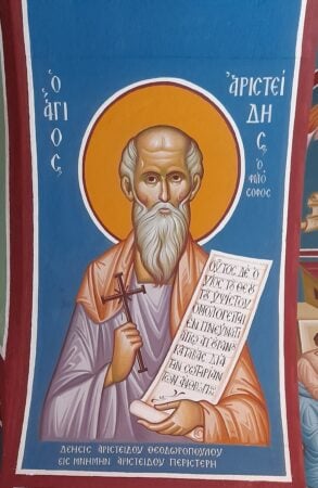 Ανάμεσα σ’ αυτούς τους φωταυγείς πνευματικούς αστέρες που λαμπρύνουν το πνευματικό στερέωμα, συναριθμείται και ο «τῷ Χριστῷ προσηνέχθης θυσία ἄμωμος καί ὁλοκάρπωμα θεῖον αἰωρηθείς ἀπηνῶς ἐν ἀγχόνῃ» ηγλαϊσμένος και στεφανηφόρος μάρτυς του Χριστού, άγιος Αριστείδης.Ο επιφανής αυτός Αθηναίος φιλόσοφος αναδείχθηκε φλογερός απολογητής κατά τον 2ο μ.Χ. αιώνα και η Ορθόδοξη Εκκλησία μας τιμά και γεραίρει την ιερά του μνήμη στις 13 Σεπτεμβρίου. Υπήρξε κλεινός γόνος των Αθηνών και θαρραλέος ομολογητής της χριστιανικής πίστεως και κατέστη ευρέως γνωστός στην Εκκλησιαστική Ιστορία και Πατρολογία από την αρχαιότερη σωζόμενη απολογία του υπέρ των διωκομένων χριστιανών που φέρει τον τίτλο «Περί θεοσεβείας».Το αρχαιότερο αυτό απολογητικό σύγγραμμα τον ανέδειξε μάλιστα σε εγκαλλώπισμα και θησαύρισμα μέσα στην ευλογημένη χορεία των διδασκάλων και απολογητών της χριστιανικής πίστεως.
