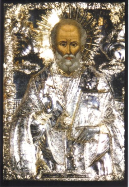 Η εφέστιος αργυροεπένδυτη εικόνα του Αγίου Νικολάου στον ομώνυμο Ιερό Ναό Όρμου Καρλοβάσου Σάμου