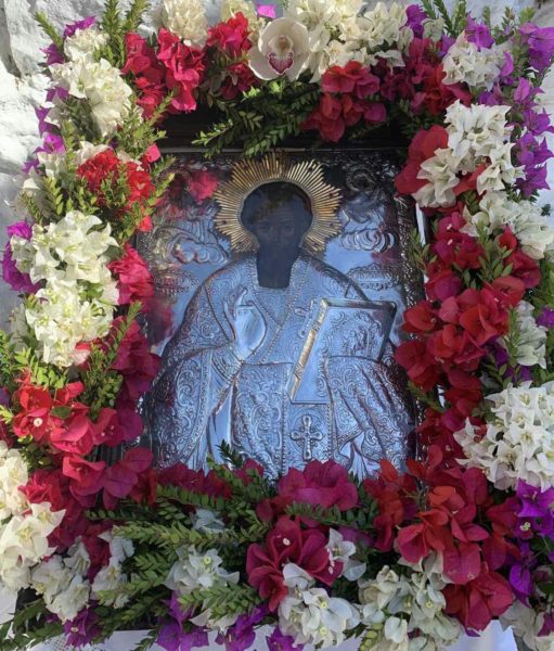 Η ανθοστόλιστη εφέστιος εικόνα του Αγίου Νικολάου στον ομώνυμο Ιερό Ναό Πυθαγορείου Σάμου