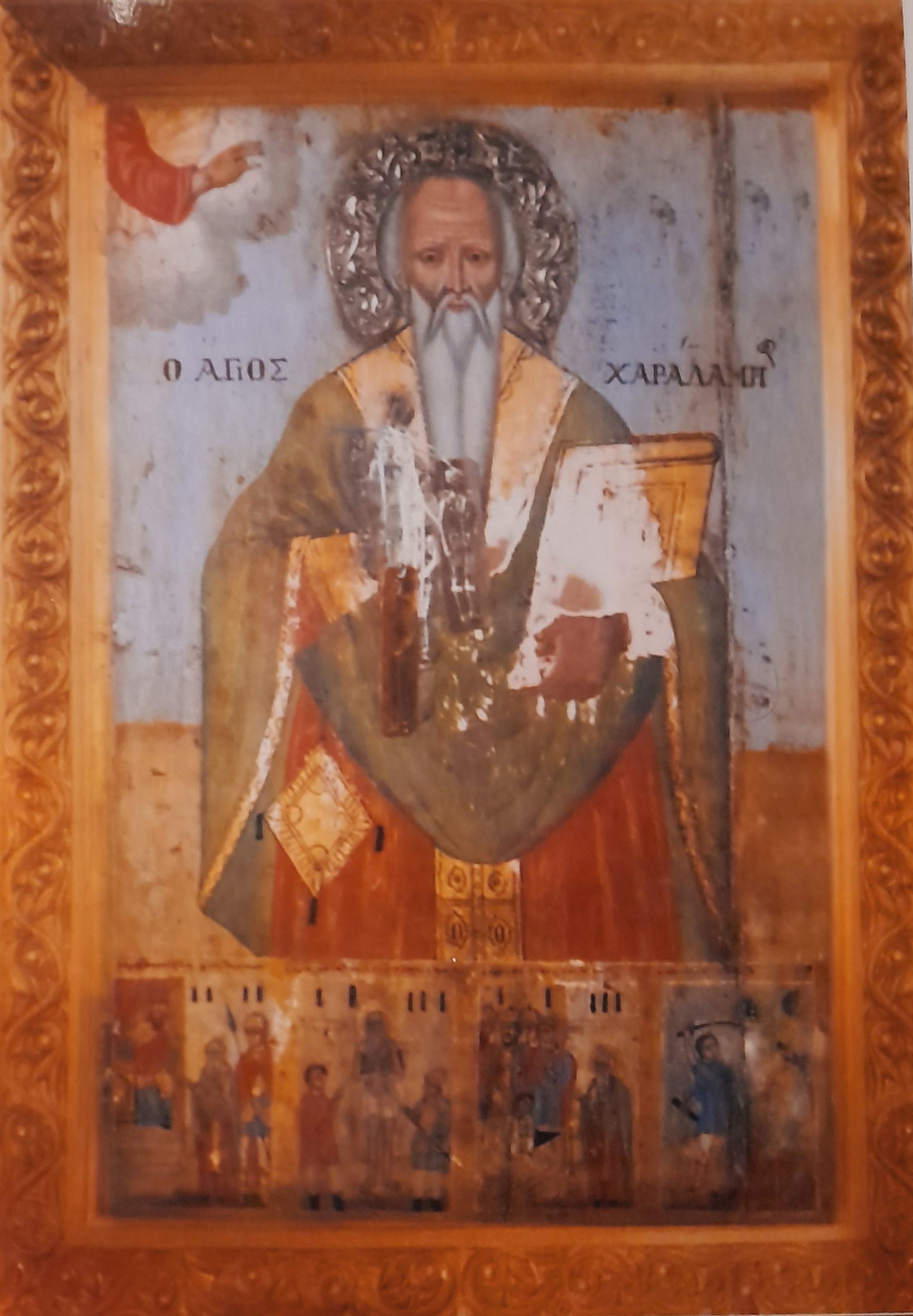 Ο άγιος ιερομάρτυς και θαυματουργός Χαραλάμπης γεννήθηκε περί το 89 μ.Χ. στη Μαγνησία της Μ.Ασίας και το 130 μ.Χ. χειροτονήθηκε ιερέας, αναπτύσσοντας κατόπιν πλούσια ποιμαντική δράση. Το 198 μ.Χ. επί των ημερών του αυτοκράτορος Σεπτιμίου Σεβήρου (193 – 211 μ.Χ.) εξαπολύθη διωγμός εναντίον των χριστιανών και ο άγιος συνελήφθη από τον έπαρχο Λουκιανό, προκειμένου να αρνηθεί τον Χριστό και να θυσιάσει στα είδωλα.