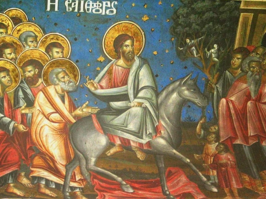 Και η επόμενη μέρα φέρνει την πομπή προς την Ιερουσαλήμ. “Τῇ ἐπαύριον ὄχλος πολὺς ὁ ἐλθὼν εἰς τὴν ἑορτήν” (Ιω. 12, 12). Το πλήθος που είχε έρθει για το Πάσχα, ακούγοντας πως ο θαυματουργός Ραββίνος πλησιάζει, ξεχύνεται στους δρόμους. Η ατμόσφαιρα αλλάζει. Από την κλειστή, φορτισμένη ατμόσφαιρα του δείπνου στη Βηθανία, περνάμε στην ανοιχτή, θορυβώδη εκδήλωση του ενθουσιασμού. “ἔλαβον τὰ βαΐα τῶν φοινίκων καὶ ἐξῆλθον εἰς ὑπάντησιν αὐτῷ” (Ιω. 12, 13). Τα βάγια, σύμβολα νίκης και χαράς, κυματίζουν στον αέρα. Οι φωνές υψώνονται, ένας χείμαρρος ζητωκραυγών: “καὶ ἔκραζον· ὡσαννά, εὐλογημένος ὁ ἐρχόμενος ἐν ὀνόματι Κυρίου, ὁ βασιλεὺς τοῦ Ἰσραήλ” (Ιω. 12, 13). «Ωσαννά!» Η κραυγή της ελπίδας, η αναγνώριση του Μεσσία, του απελευθερωτή. Τον αναγνωρίζουν ως Βασιλέα, μα η βασιλεία που προσδοκούν είναι γήινη, πολιτική, μια απελευθέρωση από τον ρωμαϊκό ζυγό. Η ειρωνεία είναι σχεδόν αφόρητη. Τον υποδέχονται ως βασιλιά, ενώ Εκείνος πηγαίνει να πεθάνει σαν κακούργος. Αυτή η μαζική έκρηξη ενθουσιασμού, πόσο εύθραυστη, πόσο εφήμερη. Μια στιγμή που συμπυκνώνει την τραγωδία της ανθρώπινης προσδοκίας που πάντα αστοχεί στο βάθος του Θείου σχεδίου. Όπως παρατηρεί και ο Ιωάννης Καντακουζηνός, ακόμα και οι παιδικές φωνές που αναγνωρίζουν τον Χριστό ως Κύριο, μαρτυρούν την θεότητά του, αφού το όνομα «Κύριος» χωρίς προσδιορισμό ανήκει μόνο στον Θεό: «Οὕτω δε ἀπροσδιορίστως τὸ « κύριος » οὐδενὸς ἑτέρου ἐστὶν ἢ τοῦ Θεοῦ. Διά τοι τοῦτο καὶ ὁ Χριστὸς Θεὸς ὢν, μὴ μόνον οὐδὲν ἐπετίμησε τοῖς λέγουσι τὸ, « Ωσαννά ἐν ὑψίστοις, … ἀλλὰ καὶ τὸν Δαβὶδ εἰς μέσον ἤγαγεν…».[1] Οι πέτρες της Ιερουσαλήμ, θα μπορούσε να πει κανείς, έβλεπαν πιο καθαρά από τα μάτια των πολλών.