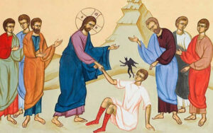 Βρισκόμαστε ενώπιον ενός δυστυχισμένου πατέρα. Ο γιός του, το βλαστάρι του πάσχει από δαιμονική επήρεια. Έχει καταληφθεί από πονηρό πνεύμα με αποτέλεσμα όλη του η ζωή να είναι συνυφασμένη με αυτό. Πέφτει κάτω, αφρίζει και τρίζει διαρκώς τα δόντια του, φθάνει μέχρι το σημείο να γίνεται ξηρός και αναίσθητος. Εν ολίγοις βιώνει ένα δράμα! Γι’ αυτό σπεύδει αρχικώς στους μαθητές του Χριστού να τον βοηθήσουν. Αυτοί αδυνατούν. Τότε δεν του απομένει άλλη λύση, παρά μονάχα ο Θεάνθρωπος Κύριος. Όντως τρέχει στον Διδάσκαλο μαζί με το δύσμοιρο τέκνο του.