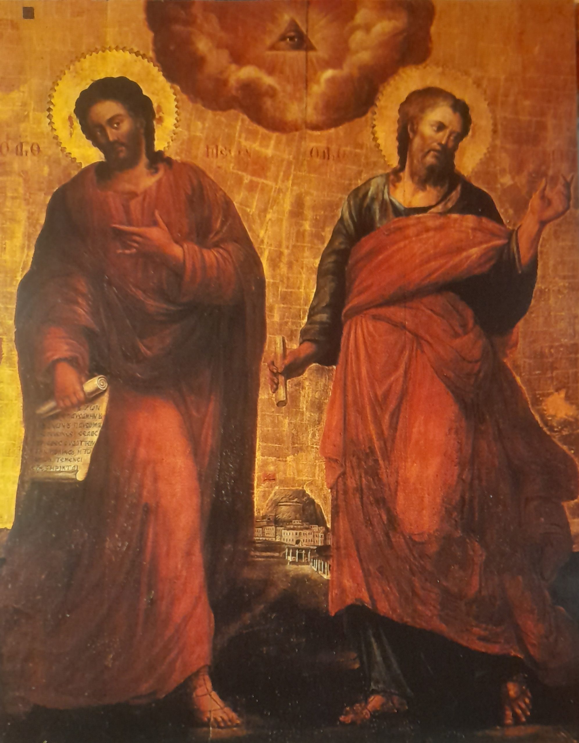 Φορητή εικόνα των Αγίων Ιάσονος και Σωσιπάτρου στον Ιερό Προσκυνηματικό Ναό Αγίου Σπυρίδωνος Κερκύρας, έργο του Σπυρίδωνος Σπεράντζα (Β’ μισό του 18ου αιώνα).