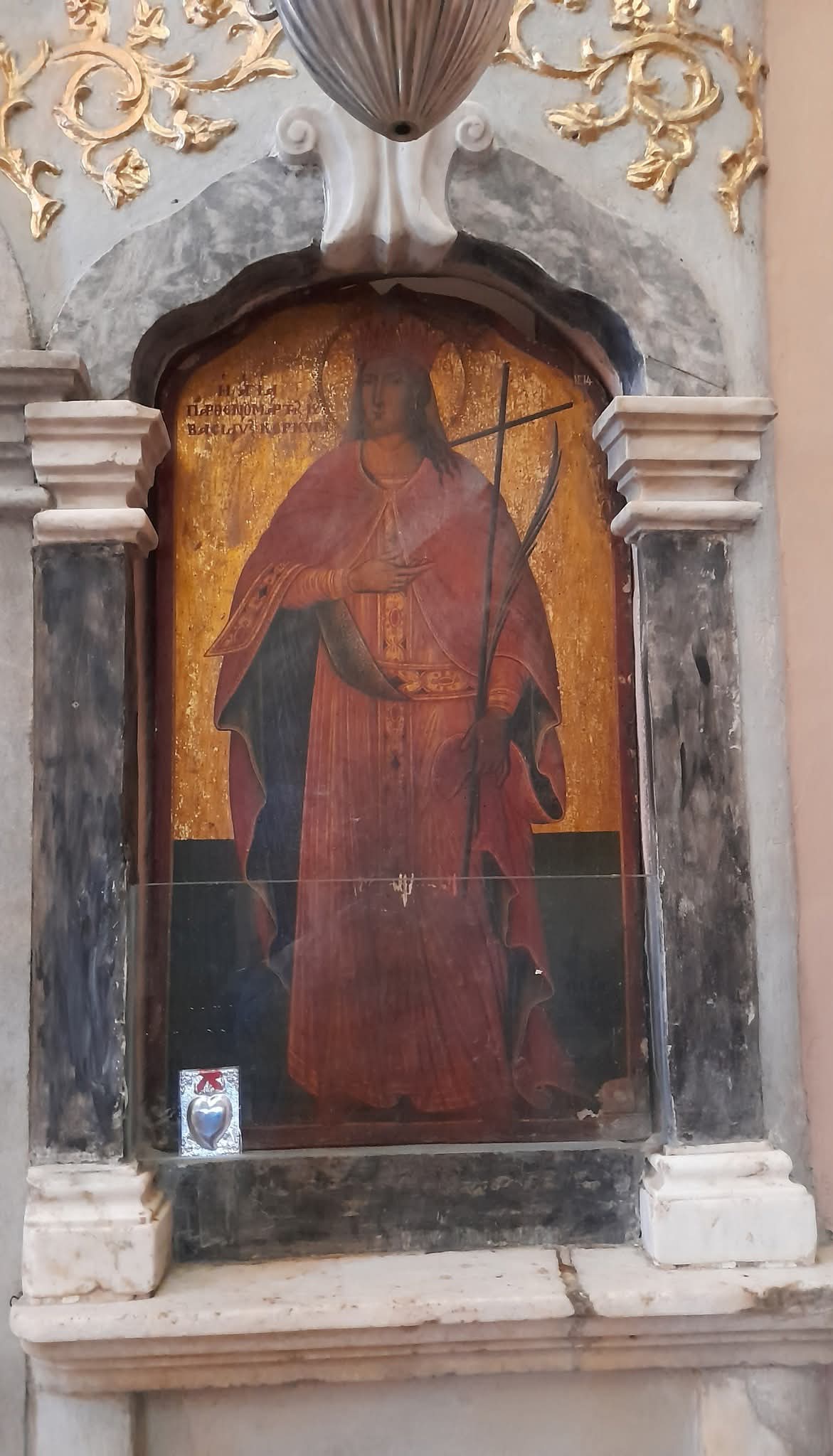 Φορητή εικόνα της Αγίας παρθενομάρτυρος Κερκύρας στον Ιερό Ναό Αγίων Ιάσονος και Σωσιπάτρου Κερκύρας