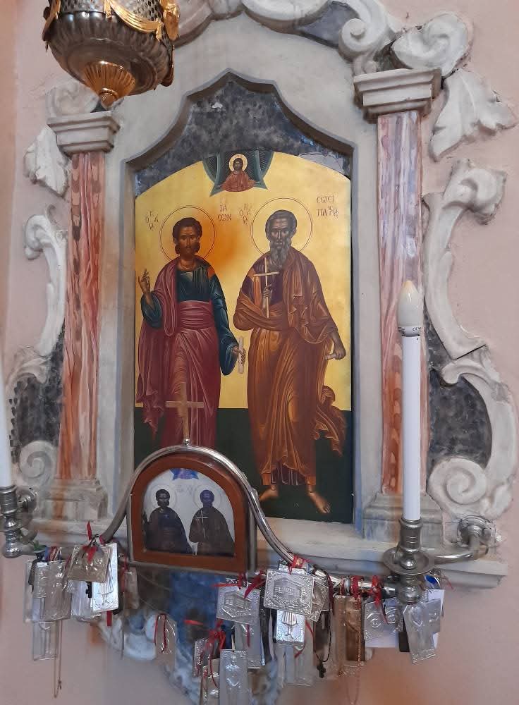Φορητή εικόνα των Αγίων Ιάσονος και Σωσιπάτρου στον ομώνυμο Ιερό Ναό Κερκύρας