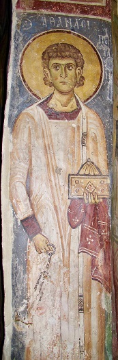 Ἡ τιμὴ τοῦ ὁσίου Ἀθανασίου εἶχε μεγάλη διάδοση καθόλη τὴ φιλάγιο Κύπρο, καθὼς τὸ μαρτυρεῖ καὶ ἡ ἁγιογράφησή του σὲ ὅλους σχεδὸν τοὺς ναοὺς τοῦ νησιοῦ, ἀπὸ τὸν 12ο αἰώνα τοὐλάχιστον καὶ ἑξῆς17. Στὶς ἐν λόγῳ τοιχογραφίες ὁ ὅσιος ἀπεικονίζεται ὡς διάκονος, πρᾶγμα ὅμως τὸ ὁποῖο δὲν μαρτυρεῖται ἀπὸ τὸν ὅσιο Ἀναστάσιο στὰ ὅσα μᾶς ἀναφέρει γι᾿ αὐτόν, ὅπως ἤδη πιὸ πάνω τὰ ἐκθέσαμε. Ταπεινὰ φρονοῦμε πὼς ὁ ὅσιος ἦταν ἴσως ἀναγνώστης ἢ εἶχε κάποια ὑπηρεσία στὸν ναό. Εἶναι ἐπίσης ἐξίσου πιθανὸν ἡ τέτοια παράστασή του νὰ συμβολίζη τὴν ἀφιέρωσή του στὸν Θεὸ καὶ τὴν διακονία του στὸν πλησίον18. Ἂς μὴ ξεχνοῦμε ἐξάλλου καὶ τὴ μικρὴ ἡλικία, κατὰ τὴν ὁποία ἐκοιμήθη ὁ ἅγιος (λίγο μετὰ τὰ εἴκοσί του χρόνια), ποὺ δὲν ἐπέτρεπε, σύμφωνα μὲ τοὺς ἱεροὺς Κανόνες, νὰ ἦταν διάκονος19.