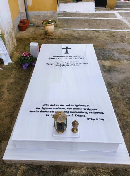 05/03/2024 05/03/2024 Συμπληρώνονται με τη Χάρη του Αναστάντος Χριστού 40 ημέρες από το πρωινό της 26ης Ιανουαρίου, όταν μετέστη ειρηνικώς προς τον Κύριον της Δόξης ο πρωτοπρεσβύτερος της Ιεράς Μητροπόλεως Κερκύρας, Παξών και Διαποντίων Νήσων π.Φώτιος Ασπιώτης. Ένας ρέκτης εργάτης του Ευαγγελίου, ένας σεμνός λευίτης των ιερών μυστηρίων. Ο πατήρ Φώτιος Ασπιώτης, καταγόμενος από τα Σπαρτερά της...