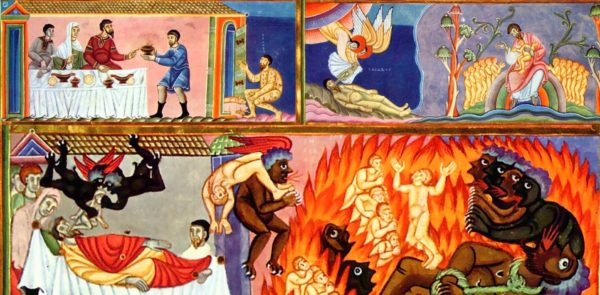 Όντως, σε πρώτη ανάγνωση, ο πλούσιος έχει μόνον να φοβάται την μετά θάνατον τιμωρία. Παράλληλα, ο Λάζαρος μοιάζει να υπομένει την εξαθλίωση, στο όνομα μιας μετά θάνατον αναπαύσεώς του στην αγκαλιά του Αβραάμ. Εάν παραμείνουμε σ΄ αυτήν την προσέγγιση, οι αδικημένοι ακούν έναν Θεό να τους καθησυχάζει, λέγοντας:
