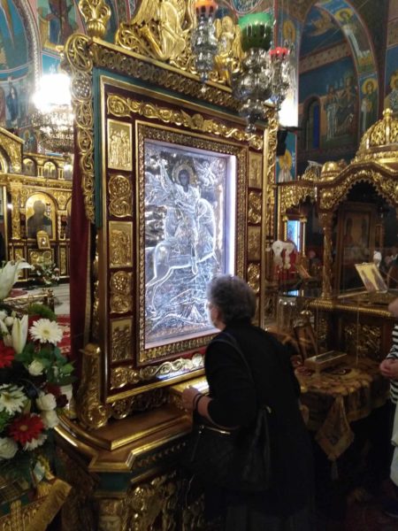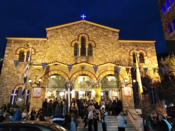 Στους πανέμορφους Αμπελόκηπους λοιπόν, που μυροβολούν την ευγένεια και την καλοδεχτικότητα των ανθρώπων τους, με τους επιβλητικούς και πολυφρόνιστους δρόμους τους και τα σφύζοντα από κόσμο νεολαιίστικα μαγαζιά τους, σύσσωμη όλη η Αθήνα έδωσε το βροντερό παρόν, για να τιμήσει την άχραντη μνήμη του Αγιομάρτυρα της ορθοδοξίας μας Δημητρίου του Μυροβλήτου. Στους Αμπελόκηπους, που με τους ολάνθιστους κήπους τους κάποτε και τα μποστάνια τους κόμιζαν το καλοκαίρι στην Αθήνα, αλλά και που πρωτοστάστησαν, στην αστική μεγαλουργία της πόλης αργότερα, με την «Βίλα Μαργαρί-τα», το «Κτήμα Θών» και όλα τα άλλα αλησμόνητα στοιχεία της κοινωνικής τους ευμάρειας. Επιβλητικός ο καλλιεπής ναός της Πανόρμου και σημαιοστολισμένος με την γαλανόλευκη και τους χρυσοπόρφυρους σταυραετούς του Βυζαντίου, κατηύγαζε την άφατη κατάνυξη των πιστών, αλλά και την ιερότητα της μνήμης της έξοχης ηθικά φυσιογνωμίας του Αγίου Δημητρίου. Με έκδηλη την αγάπη και την ηθική φροντίδα για την επιμέλειά του, τόσο του ευσεβούς προϊσταμένου του ναού Αρχιμανδρίτου κ.κ. Πλάτωνος Βακαλάκη, όσο και των φροντιστών του κ.κ. Βασίλη Γιαννακόπουλου, Κυριακής Κωνσταντοπούλου, αλλά και των ευγενών εθελοντών της εκκλησίας, που με ξεχωριστή αφοσίωση και αγάπη, στόλισαν τον ναό.