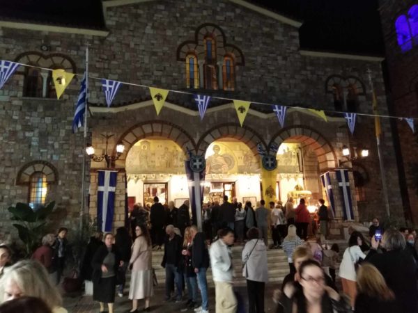 Στους πανέμορφους Αμπελόκηπους λοιπόν, που μυροβολούν την ευγένεια και την καλοδεχτικότητα των ανθρώπων τους, με τους επιβλητικούς και πολυφρόνιστους δρόμους τους και τα σφύζοντα από κόσμο νεολαιίστικα μαγαζιά τους, σύσσωμη όλη η Αθήνα έδωσε το βροντερό παρόν, για να τιμήσει την άχραντη μνήμη του Αγιομάρτυρα της ορθοδοξίας μας Δημητρίου του Μυροβλήτου. Στους Αμπελόκηπους, που με τους ολάνθιστους κήπους τους κάποτε και τα μποστάνια τους κόμιζαν το καλοκαίρι στην Αθήνα, αλλά και που πρωτοστάστησαν, στην αστική μεγαλουργία της πόλης αργότερα, με την «Βίλα Μαργαρί-τα», το «Κτήμα Θών» και όλα τα άλλα αλησμόνητα στοιχεία της κοινωνικής τους ευμάρειας. Επιβλητικός ο καλλιεπής ναός της Πανόρμου και σημαιοστολισμένος με την γαλανόλευκη και τους χρυσοπόρφυρους σταυραετούς του Βυζαντίου, κατηύγαζε την άφατη κατάνυξη των πιστών, αλλά και την ιερότητα της μνήμης της έξοχης ηθικά φυσιογνωμίας του Αγίου Δημητρίου. Με έκδηλη την αγάπη και την ηθική φροντίδα για την επιμέλειά του, τόσο του ευσεβούς προϊσταμένου του ναού Αρχιμανδρίτου κ.κ. Πλάτωνος Βακαλάκη, όσο και των φροντιστών του κ.κ. Βασίλη Γιαννακόπουλου, Κυριακής Κωνσταντοπούλου, των μελών του ενοριακού συμβουλίου του Αγίου Δημητρίου κ.κ. Φωτόπουλου Γιώργου Αντιπροέδρου και Βασιλικής Κολοκυθά, αλλά και των ευγενών εθελοντών της εκκλησίας, που με ξεχωριστή αφοσίωση και αγάπη, στόλισαν τον ναό.