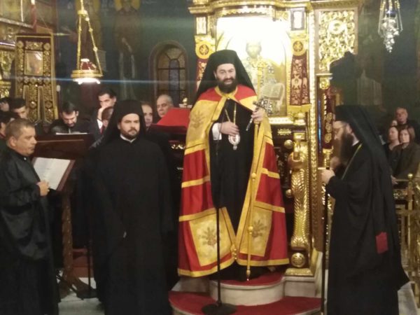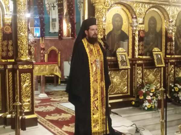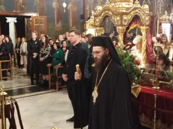 Του πανηγυρικού αρχιερατικού εσπερινού χοροστάστησαν λοιπόν ο σεπτός Επίσκοπος Ευρίπου κ.κ. Χρυσόστομος, συγχοροστατούντων του ευσεβούς Αρχιμανδρίτη κ.κ. Αχίλλειου Τσούτσουρα της Ιεράς Μητροπόλεως Τρίκκης, Γαρδικίου και Πύλης, του ευλαβούς Αρχιμανδρίτη και προϊσταμένου του ναού κ.κ. Πλάτωνος Βακαλάκη και των υπολοίπων ευσεβών ιερέων του Αγίου Δημητρίου Πατέρων κ.κ. κ.κ. Κίκιζα Γεώργιου, Κωνσταντέλλου Δημητρίου, Γασπαράτου Θεολόγου και του διακόνου Αποστόλου Αστέριου, αλλά και άλλων ιερέων, που προσήλθαν να τιμήσουν τη μνήμη του Αγίου Δημητρίου. Με το πέρας της λειτουργίας τον λόγο έλαβε ο ευλαβής Αρχιμανδρίτης κ.κ. Αχίλλειος Τσούτσουρας, όπου και μίλησε με τον μεστό και εμπνευσμένο θεολογικά λόγο του, για την έξοχη ηθικά φυσιογνωμία του Αγίου Δημητρίου, που λαμπρύνει την ορθοδοξία. Ενώ στην αντιφώνησή του ο Θεοφιλέστατος Επίσκοπος Ευρίπου κ.κ. Χρυσόστο-μος αφού διεμήνυσε το ευγενές και διάστικτο από αγάπη μήνυμα για την εορτή του Αγίου Δημητρίου, του σεπτού Αρχιεπισκόπου μας Αθηνών και πάσης Ελλάδος κ.κ. Ιερωνύμου και εξήρε παράλληλα το αδαμάντινο ήθος του Αγίου Δημητρίου, ευχήθηκε σε όλους Χρόνια Πολλά, υγεία, πνευματική ευημερία και ο άχραντος Άγιος Δημήτριος ο Μυροβλήτης, να σκέπει και να αποτελεί για τις οικογένειές τους φωτεινό οδοδείκτη ηθικής ευκρασίας.