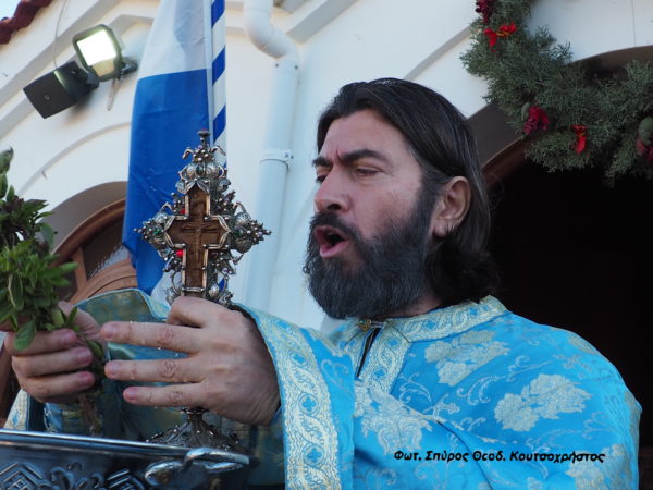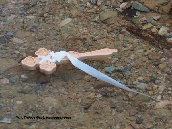 Μετά την απόλυση, Ιερείς και πιστοί κατευθύνθηκαν σε γεφυράκι πλησίον της Ιεράς Μονής, για να αγιαστούν και τα τρεχούμενα ύδατα.