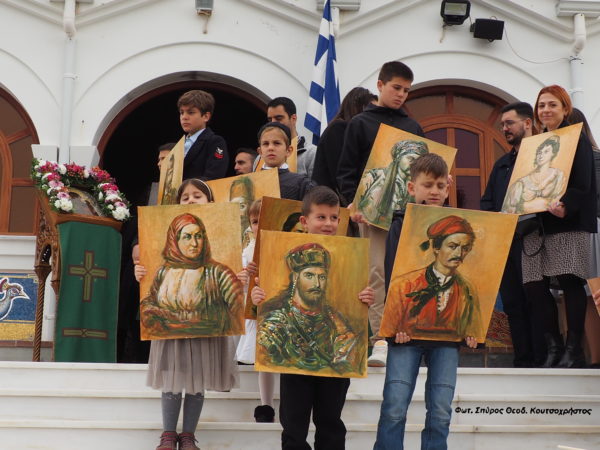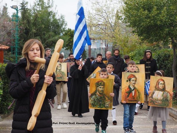 Ο π. Ευάγγελος, διανέμοντας στους πιστούς, πορτραίτα την Ηρώων της Επανάστασης έκανε και περιλιπτική αναφορά στην συνεισφορά τους στον Αγώνα του 1821.