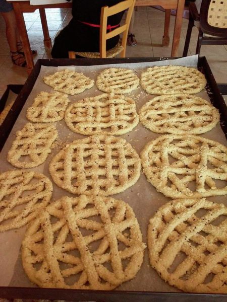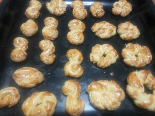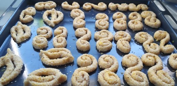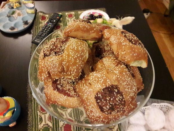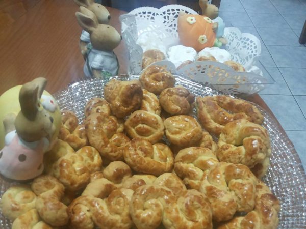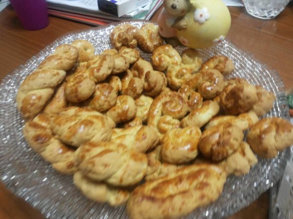 Ευωδιάζει το Πάσχα. Καθαρίσαμε και φέτος τα σπίτια μας και μοσχομύρισαν από κουλούρια με σισάμι, κουλουράκια πασχαλινά, σμυρνέϊκα τελευταίως, και τις απαραίτητες φλαούνες. Βάψαμε και τα αυγά μας τα κόκκινα… Ο Αριστείδης έφτιαξε ως ειδήμων τη μαγειρίτσα και έψησαν με τον Αντρέα μας το κοκορέτσι και τα παϊδάκια… Βεβαίως, συμφάγαμε και με την οικογένεια του Αριστείδη στο Παλαιομέτοχο τη μέρα του Πάσχα.