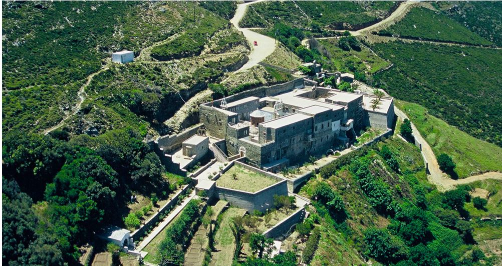 Εντός της Ι.Μονής υπάρχουν 20 παρεκκλήσια και σε όλο το νησί αριθμεί 40. Μοναδικό στο είδος του είναι το Ιερό Εικονοστάσιο της Ι.Μ. σύμφωνα με τον W.Miller. Από την Αγία Τράπεζα αναβλύζει αγίασμα το οποίο αγιάζει τους πιστούς μέχρι σήμερα. Πολλά κειμήλια ανεκτίμητης θρησκευτικής αξίας και όχι μόνο είναι κτήμα της. Συγκεκριμένα αναφέρουμε την ιερά εικόνα της Παναγίας <<Ρίζα του Ιεσσαί>> την Μυροβλύτισσα η οποία βρίσκεται στο Καθολικό της Ι.Μ. Αυτή προέρχεται από τον ναό της Παναγίας των Βλαχερνών ΚΠόλεως από τον 16ο αιώνα όταν την μεταφέρανε πατέρες της Μονής από το Μετόχι Βλάχ. Σαράγι Κωνσταντινουπόλεως. Επίσης αξίζει να αναφέρουμε την αργυροκέντητη εικόνα του Αγίου Νικολάου φιλοτεχνημένη από την Λεοντία μοναχή στην οποία χρησιμοποίησε ως υλικά πολύτιμους λίθους και αυτό που την κάνει μοναδική είναι ότι στα σαρκώματα της ιεράς αυτής εικόνας αντί για νήμα έκανε χρήση από της τρίχες των μαλλιών της.