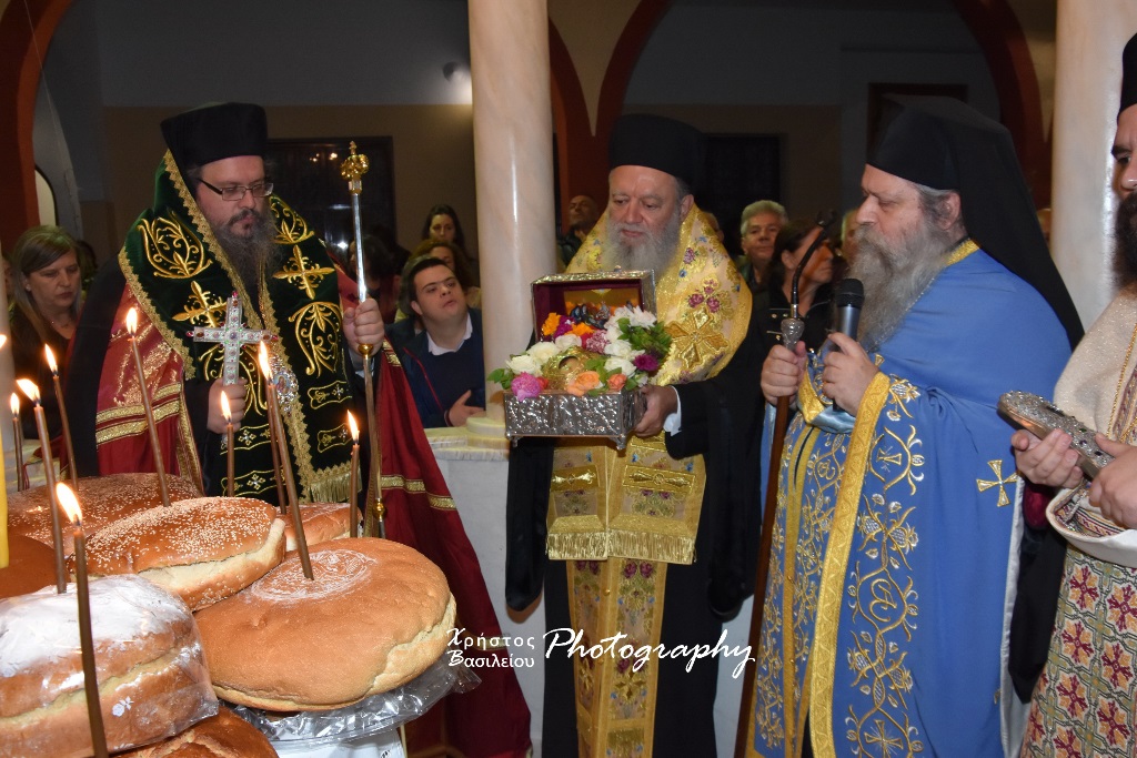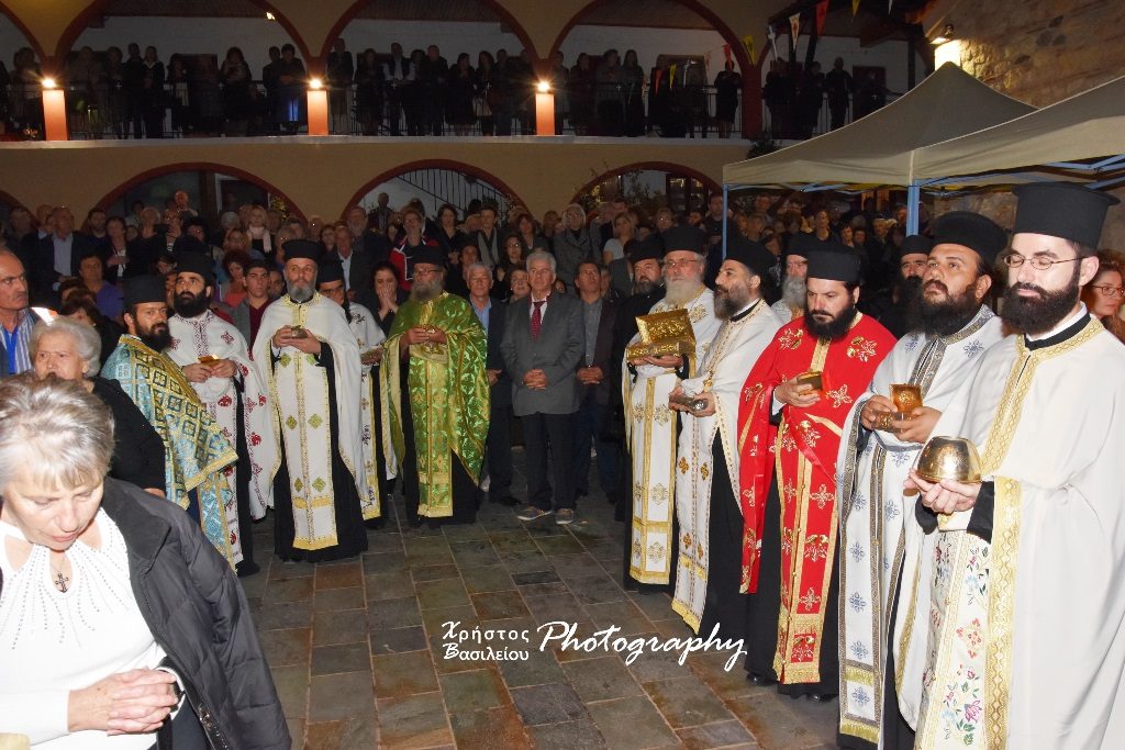 Κατά την κυριώνυμη ημέρα της πανηγύρεως, Πέμπτη 1 Νοεμβρίου 2018, χοροστάτησε στον Όρθρο και προεξήρχε στη Θεία Λειτουργία ο Σεβασμιώτατος Μητροπολίτης Νέας Κρήνης και Καλαμαριάς κ. Ιουστίνος, με την συλλειτουργία και των δύο άλλων Αρχιερέων, Λαρίσης και Τυρνάβου κ. Ιερωνύμου και Χαλκίδος κ. Χρυσοστόμου και πολλών ακόμη Ιερέων, με πρώτο τον Πρωτοσύγκελλο της Ι. Μητροπόλεως, Αρχιμ. Νικόδημο Ευσταθίου.