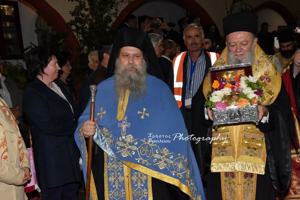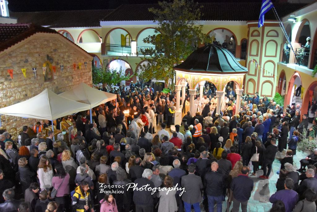 Λίγο πριν την Απόλυση του Εσπερινού, ο Σεβασμιώτατος κ. Χρυσόστομος εξέφρασε την χαρά του για την παρουσία των αγίων Αρχιερέων στο Μοναστήρι και την συγκίνηση του για την πολυπληθέστατη παρουσία των πιστών προσκυνητών, ενώ συνεχάρη τον άγιο Καθηγούμενο π. Γαβριήλ και τους αδελφούς της Μονής, τους αγίους ιεροψάλτες, καθώς και όλους τους διακονήσαντες την Ιερά Μονή για την αγαθή έκβαση της πανηγύρεως και ευχήθηκε σε όλους εόρτια, ιδιαιτέρως στον εορτάζοντα αδελφό της Ιεράς Μονής, Αρχιμ. Δαυΐδ Ψαράκη.