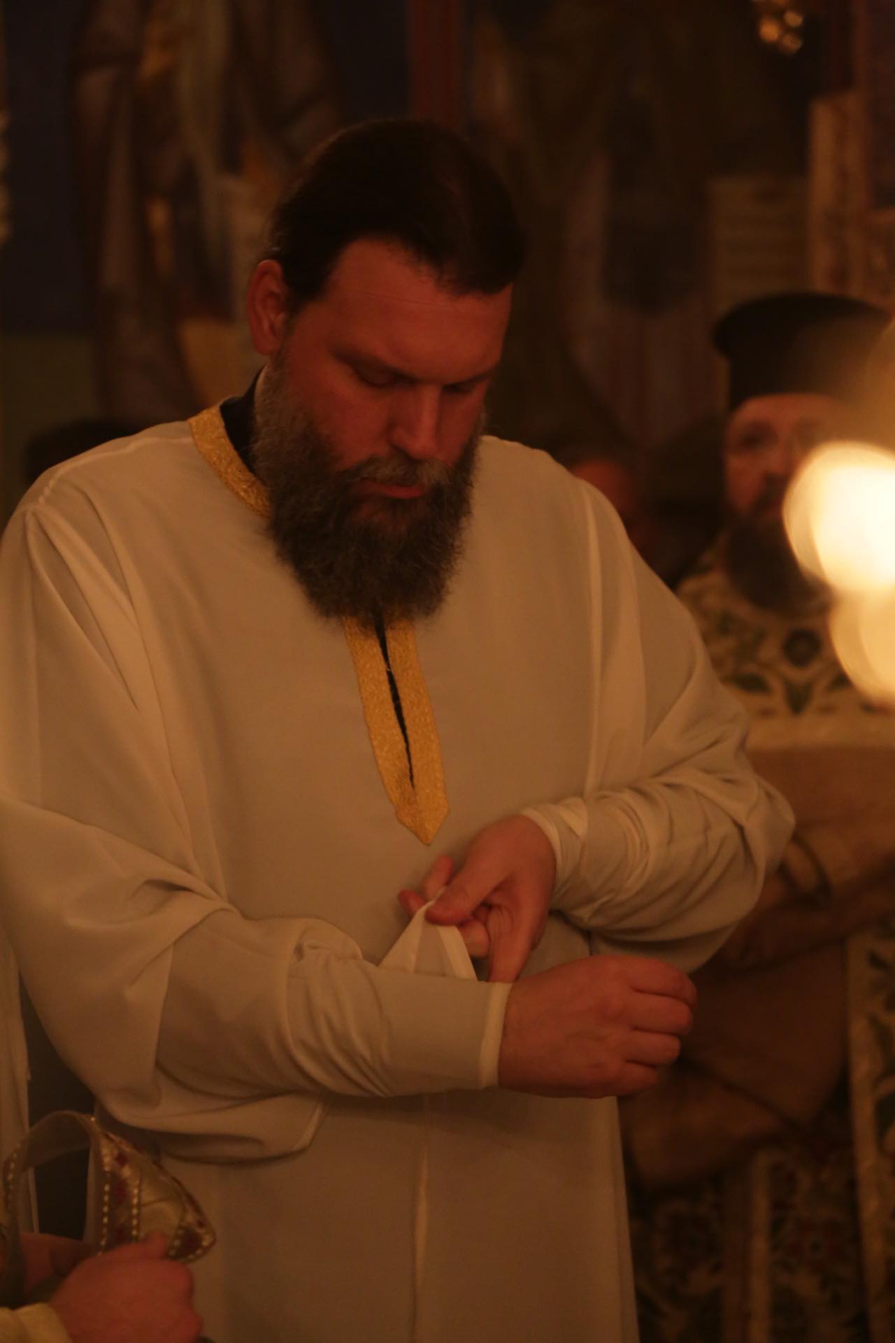 Τα αναλογία εκόσμησαν δεξιά ο πατήρ Δαμασκηνός και η συνοδεία του και αριστερά μοναχοί από την Ιερά Μόνη Δοχειαρίου. Στη συνέχεια ακολούθησε η Αγιορείτικη τράπεζα.