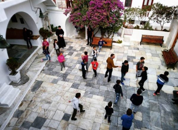 Στο Καθολικό της Ιεράς Μονής Παναγίας Τουρλιανής, στην Άνω Μέρα Μυκόνου, τελέσθηκε ο Αγιασμός για την έναρξη των Κατηχητικών Σχολείων της περιοχής, από τον Κατηχητικό Υπεύθυνο της Άνω Μεράς, Αρχιμ. Αλέξιο Παπαδόπουλο, ο οποίος ομίλησε στα παιδιά και τους γονείς τους, που παρίσταντο, για τη σημασία της φοίτησης στο Κατηχητικό Σχολείο και τους κάλεσε να πλαισιώσουν την ιεραποστολική αυτή προς τους νεους δράση της Εκκλησίας.