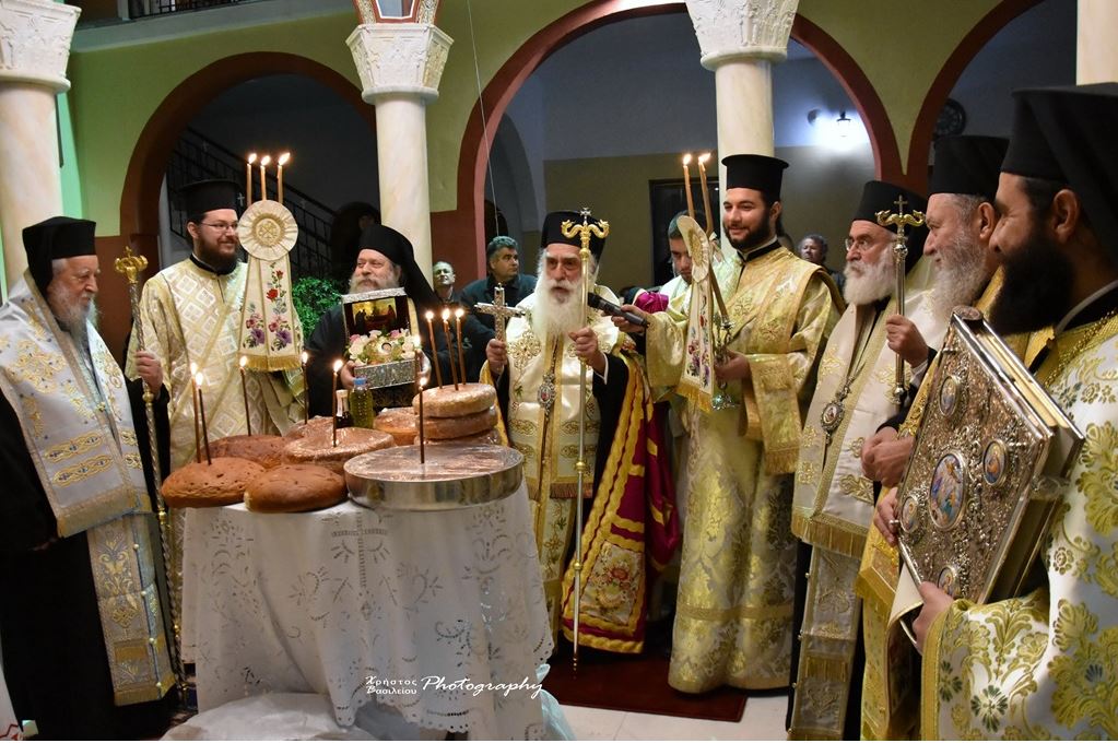 Κατά τη διάρκεια του Εσπερινού ο Σεβασμιώτατος κ. Συμέων ομίλησε διδακτικά προς το πλήθος των προσελθόντων προσκυνητών, ενώ προεξήρχε και της Ιεράς Λιτανείας, η οποία ετελέσθη στην Αυλή της Ι. Μονής και κατέληξε στην Μοναστηριακή Φιάλη, όπου ευλογήθηκαν και οι προσφερθέντες από τους πιστούς Αρτοκλασίες.