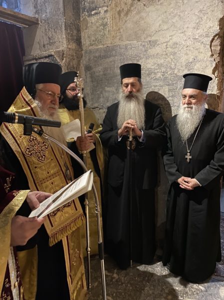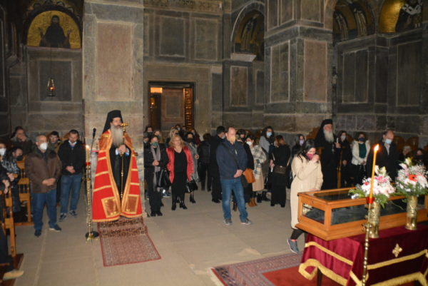 Το βράδυ στον Ιερό Ναό Κοιμήσεως της Θεοτόκου, που βρίσκεται δίπλα στο Καθολικό τελέστηκε Ιερά Αγρυπνία.