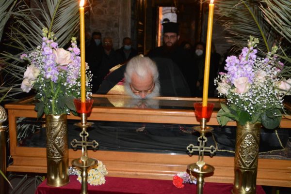 Το βράδυ στην Κρύπτη της Αγίας Βαρβάρας, όπου βρίσκεται ο τάφος του Οσίου, τελέστηκε Ιερά Αγρυπνία.