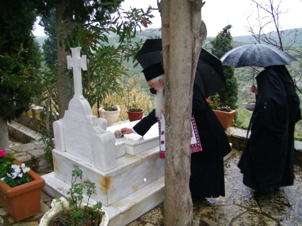 Συμφιλιωμένος με την αναχώρηση από τον κόσμο αυτό, ετοίμασε μόνος την τελευταία επίγεια κατοικία του που έκτισε πλάι του Ναού των Αγίων Μυροφόρων Γυναικών και του Αγίου Νικοδήμου.