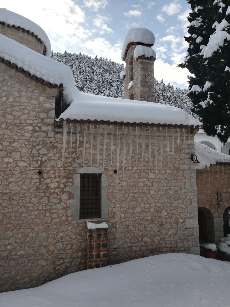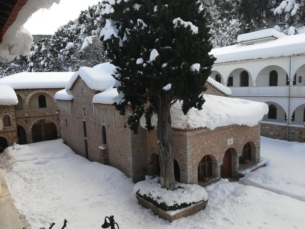 Στα λευκά ντύθηκε η Ιερά Μονή Δαμάστας