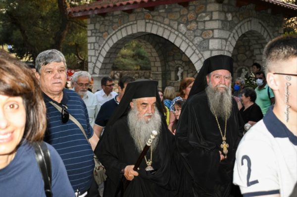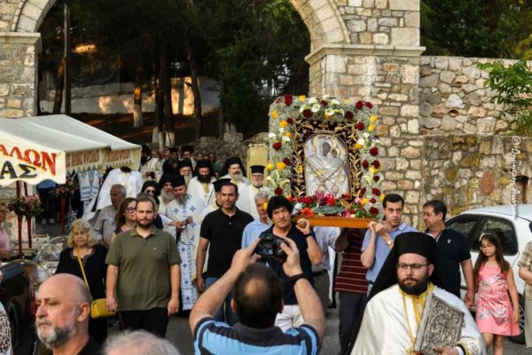 Ακολούθησε πάνδημη Πολυαρχιερατική Ιερά Λιτανεία της Θαυματουργού Εικόνος της Παναγίας στους δρόμους της Ξυνιάδος, προπορευομένης της Φιλαρμονικής του Ιερού Ενοριακού Ναού Αγιου Γεωργίου Λαρίσης, του Ιερού Κλήρου και του λαού, ενώ προ της απολύσεως, ο Καθηγούμενος της Μονής Αρχιμ. π. Αθανάσιος Σύρος, προσεφώνησε με συγκίνηση τους Σεβασμιωτάτους Μητροπολίτες και όλο τον ευλογημένο λαό και τους ευχαρίστησε για την αγιαστική και τιμητική τους παρουσία στην Πανήγυρη της Μονής.