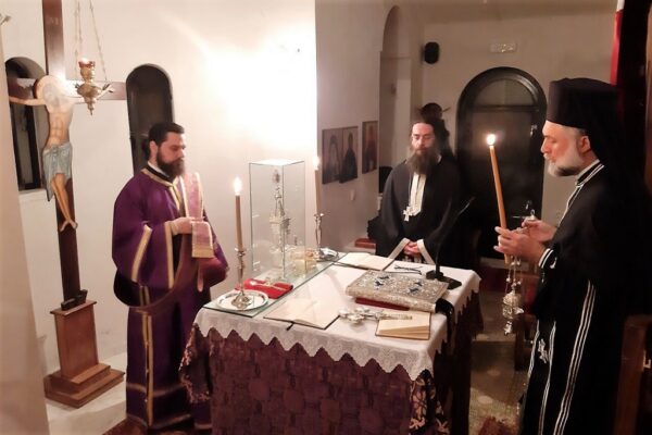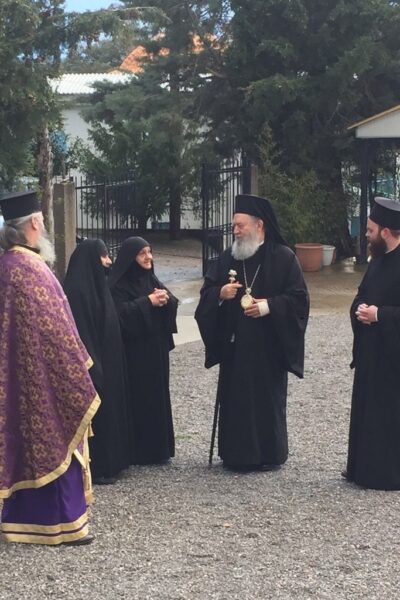 Το απόγευμα της Τετάρτης 13 Μαρτίου 2019, ο Σεβασμιώτατος Μητροπολίτης Χαλκίδος, κ. Χρυσόστομος, επισκέφθηκε την Ιερά Μονή Παναγίας Μυρτιδιωτίσσης Πάλιουρα, συνοδευόμενος από τον Πρωτοσύγκελλό του Αρχιμ. Νικόδημο Ευσταθίου και τους Αρχιμ. Νεκτάριο Ευγενικό, Αρχιμ. Αιμιλιανό Χρήστου, Διάκ. Νικόλαο Πριμηκύριο και Διάκ. Ευγένιο Τσάλλα, όπου και χοροστάτησε κατά την Προηγιασμένη Θ. Λειτουργία με τη συμμετοχή και του Οικον. Φωτίου Πάσχου, Εφημερίου Τριάδος Μεσσαπίων.