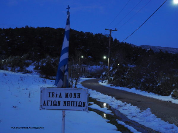 Εφικτή, ήταν η πρόσβαση στην Ιερά Μονή Αγίων Νηπίων Οινόης την Παρασκευή 11 Μαρτίου 2022, κατά την εξέλιξη της κακοκαιρίας «Φίλιππος».
