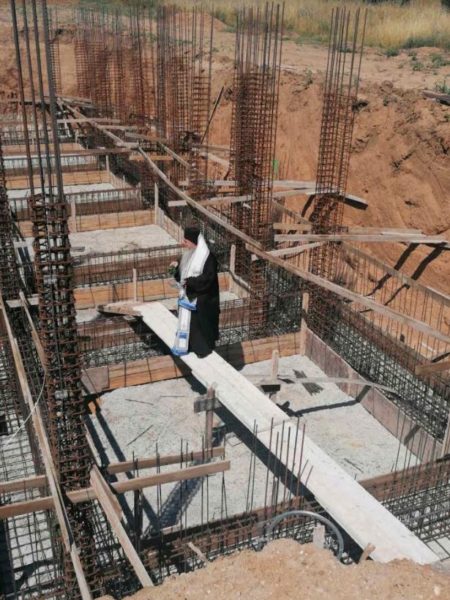 Εν όψει της θεμελίωσης αυτής, το μεσημέρι της 10ης Ιουνίου, ο φιλομόναχος Σεβασμιώτατος Μητροπολίτης Νέας Κρήνης και Καλαμαριάς κ. Ιουστίνος τέλεσε τον αγιασμό ευχόμενος και προσευχόμενος να περατωθούν τα έργα τόσο γρήγορα όπως και στην πρώτη πτέρυγα.