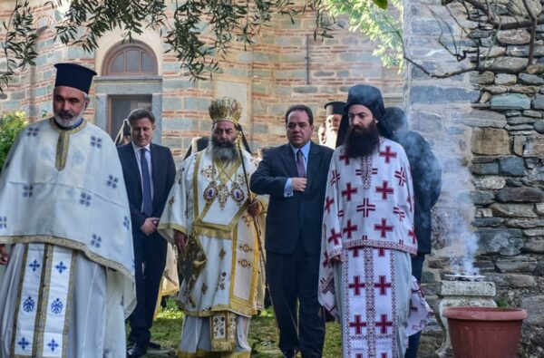Κατά την διάρκεια της Θεία Λειτουργίας τον Σεβασμιώτατο πλαισίωναν ο Καθηγούμενος της Ιεράς Πατριαρχικής και Σταυροπηγιακής Μονής των Ιβήρων, Πανοσιολογιώτατος Αρχιμ. π. Ναθαναήλ, ο Προηγούμενος αυτής, Πανοσιολογιώτατος Αρχιμ. π. Βασίλειος Γοντικάκης, καθώς επίσης Ιερομόναχοι και Διάκονοι από Μονές της Αθωνικής Πολιτείας, ενώ παρέστησαν ο Πολιτικός Διοικητής του Αγίου Όρους κ. Κωνσταντίνος Δήμτσας και ο Δήμαρχος Λαγκαδά κ. Ιωάννης Καραγιάννης.