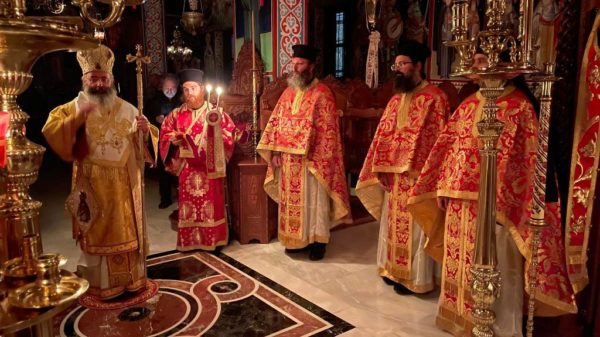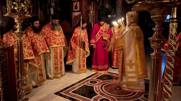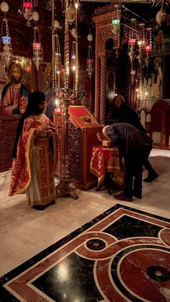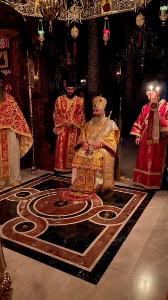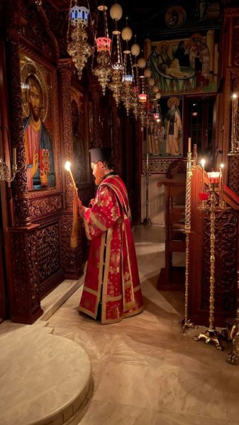 Της Αγρυπνίας προεξήρχε ο Θεοφιλέστατος Επίσκοπος Αμαθούντος κ. Νικόλαος και συλλειτούργησαμ ο Καθηγούμενος της Μονής Αρχιμανδρίτης Παϊσιος και άλλοι ιερείς.
