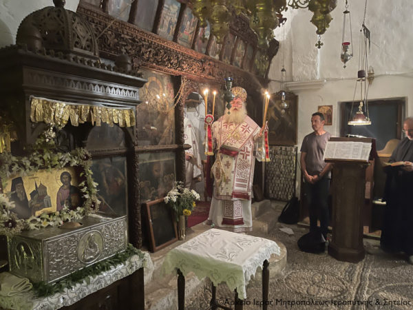 Στο σύντομο κήρυγμά του ο Σεβασμιώτατος κατά την Απόλυση της Θείας Λειτουργίας μίλησε για την πολυκύμαντη ζωή και τον οσιακό βίο και τα ασκητικά παλαίσματα του Αγίου Ιωσήφ στο τότε Μονύδριο του Καψά, το οποίο κατέστησε σημαντικό μοναστικό κέντρο και τόπο προσέλκυσης πολλών πιστών, και το κτηριακό συγκρότημα που ανήγειρε σήμερα δεσπόζει σαν αετοφωλιά πάνω από το απέραντο Νότιο Κρητικό Πέλαγος. Αφού αναφέρθηκε σε θαυματουργικές και ιαματικές επεμβάσεις του αγίου με τη δύναμη της προσευχής και την χάρη του Θεού, μίλησε για την οσιακή κοίμηση του κατά την ημέρα της μεγάλης Δεσποτικής εορτής της Μεταμορφώσεως του Κυρίου, γεγονός που μαρτυρεί, όπως σημείωσε, ότι ο Όσιος Ιωσήφ είχε μεταμορφώσει τη ζωή του και είχε γίνει και ο ίδιος μέτοχος τη χάριτος του Μεταμορφωθέντος Κυρίου. Επίσης, έκανε λόγο για τη μεγάλη ευλογία της Τιμίας Κάρας και του τάφου του Οσίου για την τοπική Εκκλησία και την Ιερά Μονή Καψά, όπου βρίσκεται ο τάφος και είναι αποθησαυρισμένα τα Ιερά Λείψανα του, και ευχήθηκε καρδιακά ο Όσιος Ιωσήφ ο Γεροντογιάννης ο Θαυματουργός να πρεσβεύει διηνεκώς στον Μεταμορφωθέντα Κύριο μας Ιησού Χριστό για όλους τους τιμώντας τη μνήμη και τους ευλαβείς και πιστούς προσκυνητές της Ιεράς Μονής που εκείνος ανακαίνισε και ανοικοδόμησε.