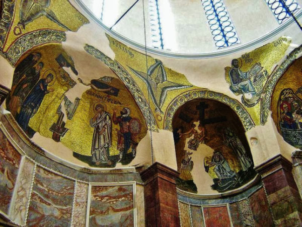 Κάτω από τα μοναδικά ψηφιδωτά, προστατευόμενα από την UNESCO, του αυτοκρατορικού μνημείου, που ανήγειρε ο Αυτοκράτωρ Κωνσταντίνος Ι΄ ο Μονομάχος, ανεγνώσθησαν οι 24 οίκοι των Χαιρετισμών.