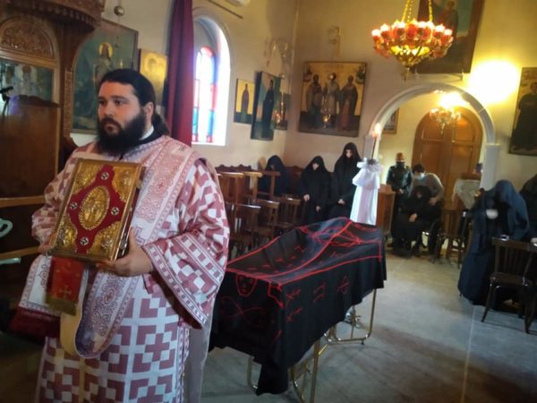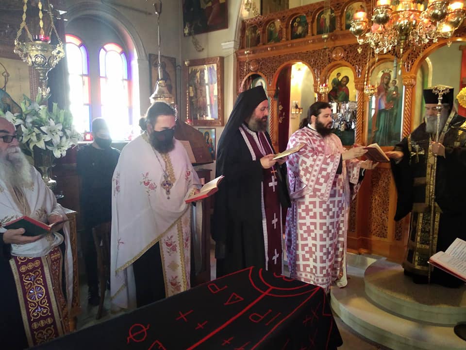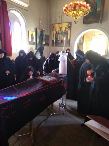 Προηγήθηκε στο Ι. Ησυχαστήριο του Αγίου Χριστοφόρου η τέλεσις Αρχιερατικής Θείας Λειτουργίας υπο του Σεβασμιωτάτου. Ο Σεβασμιώτατος ομίλησε συγκινητικά περί της αοιδίμου Καθηγουμένης.