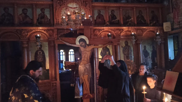 Η αδελφότητα της Ιεράς Μονής, με προεξάρχουσα την Καθηγουμένη γερόντισσα Παρασκευή, έψαλλε με μεγάλη συγκίνηση τα συγκλονιστικά τροπάρια της Ακολουθίας των Παθών.