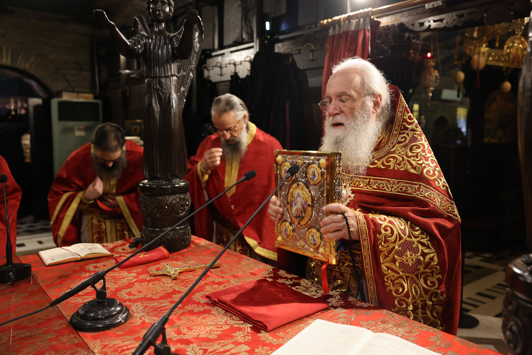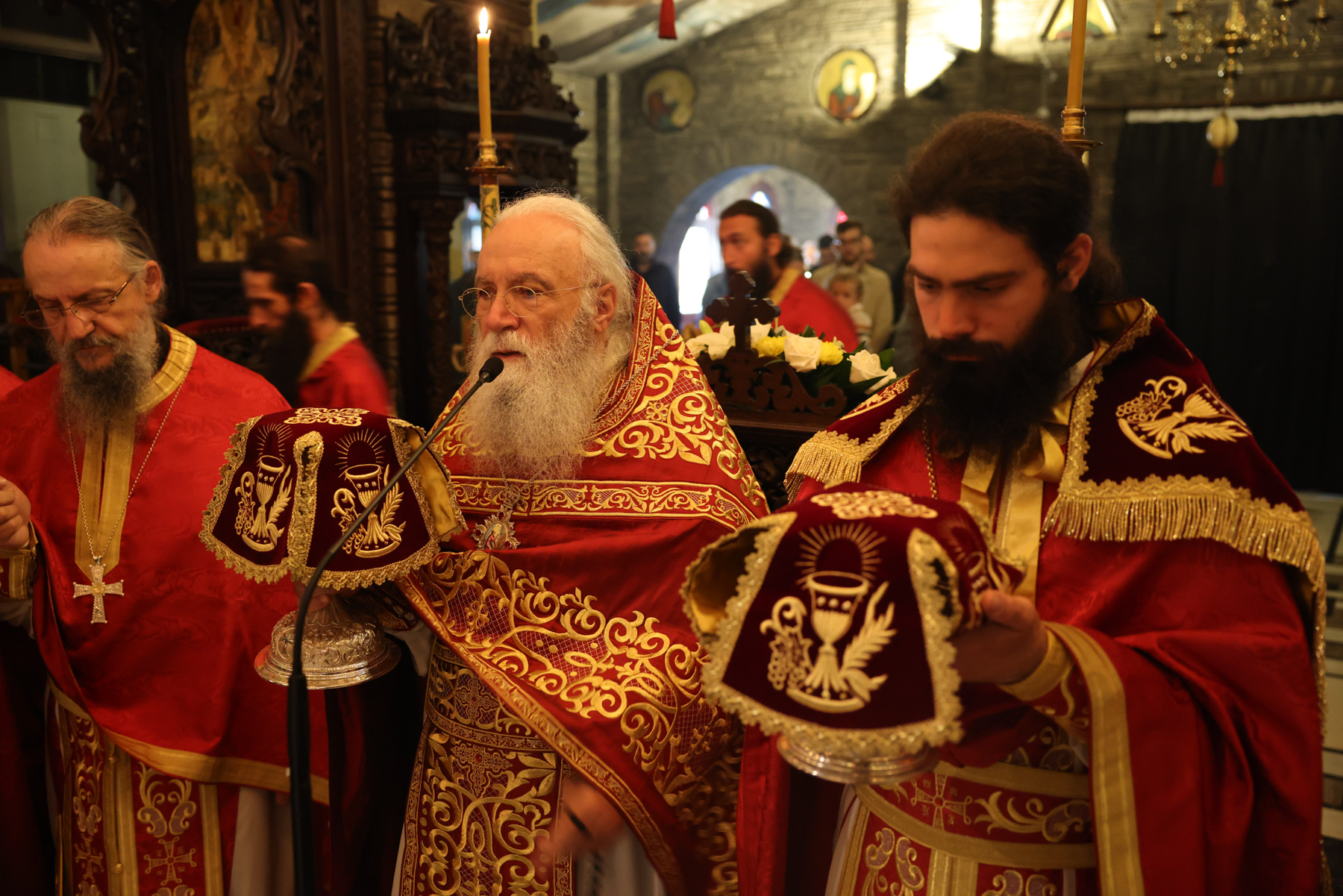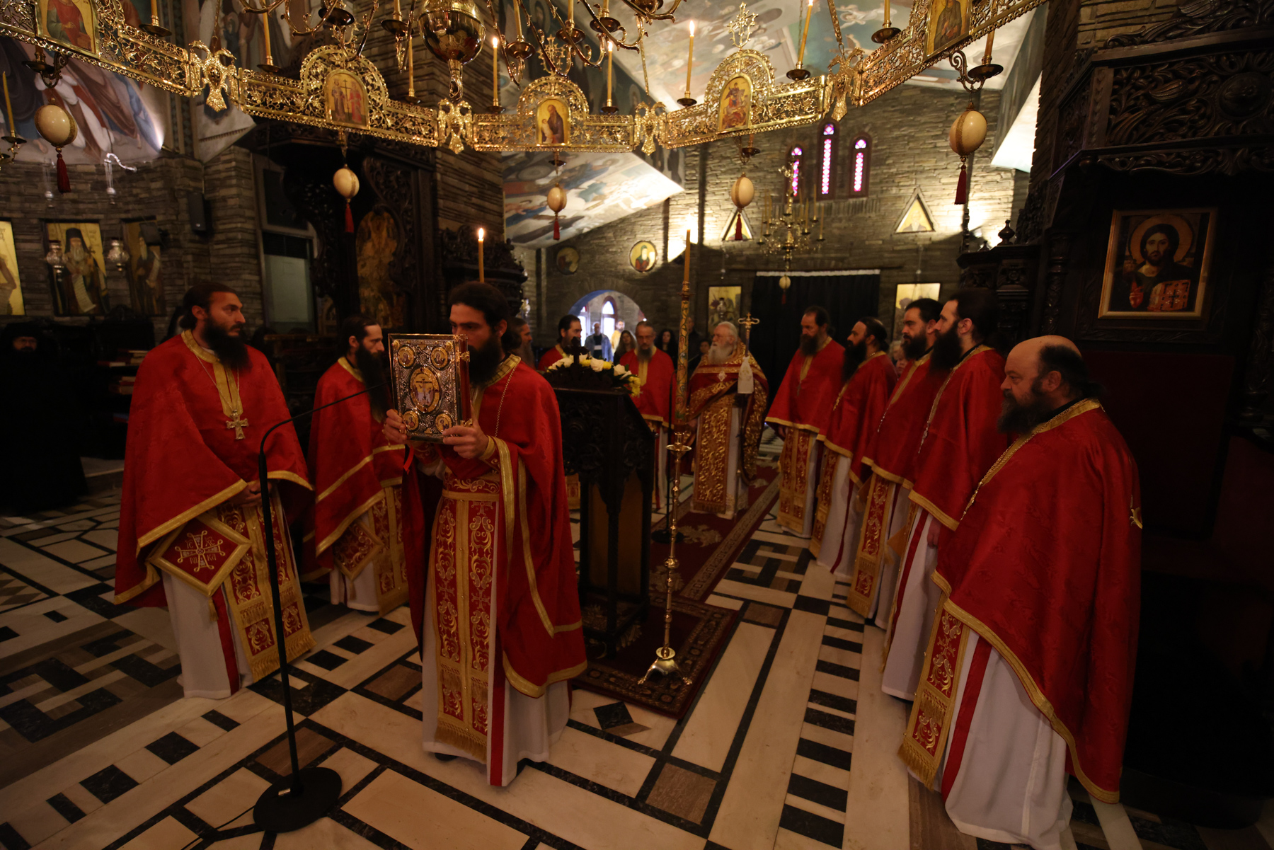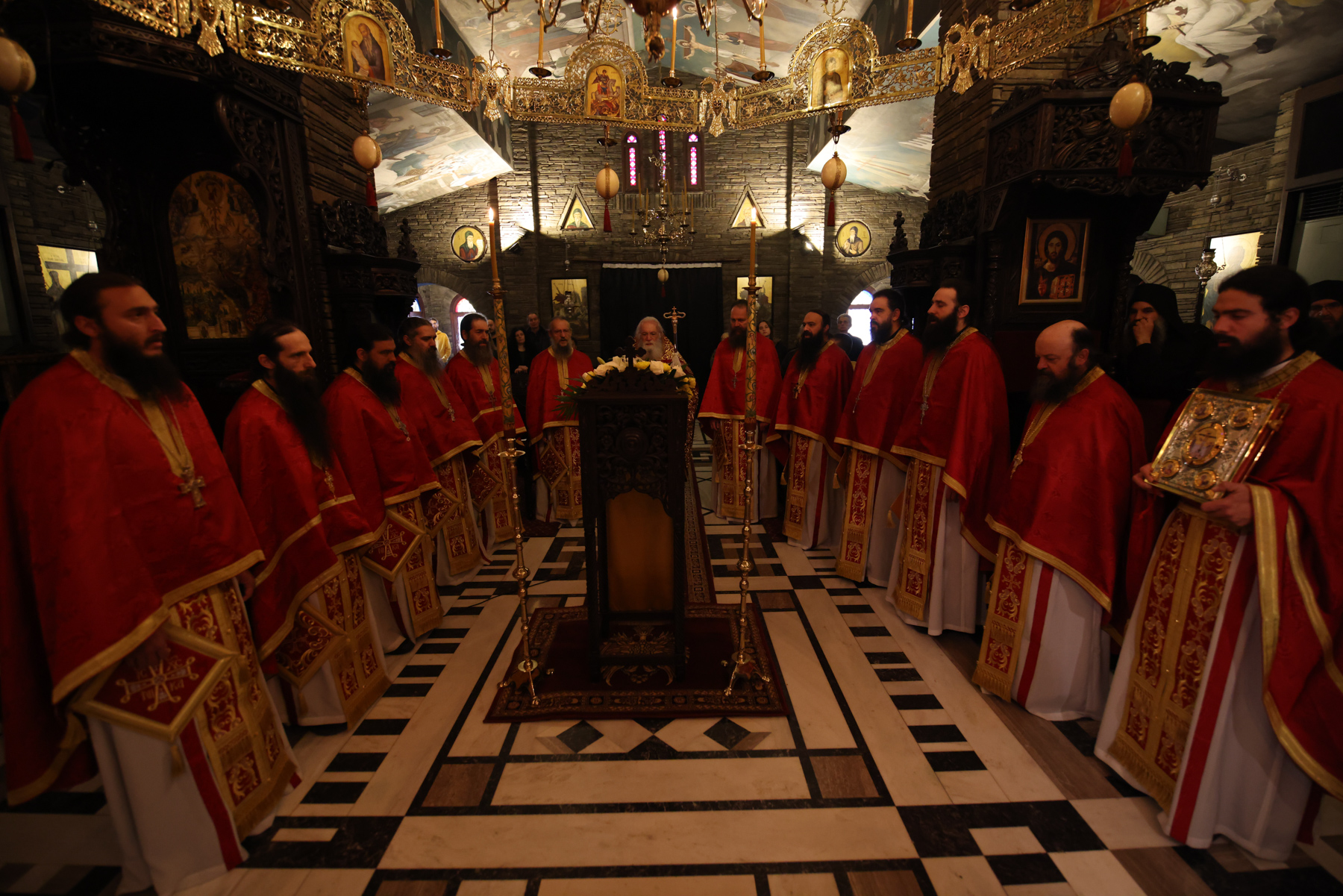 Στην Πανηγυρική Θεία Λειτουργία προεξήρχε ο Καθηγούμενος της Ιεράς Μονής, Γέροντας Νεκτάριος Μουλατσιώτης, πλαισιούμενος από τους ιερείς της αδελφότητας του Τρικόρφου. Σε ένα κλίμα βαθιάς πνευματικότητας, οι πατέρες έψαλαν το «Χριστός Ανέστη», μεταφέροντας το μήνυμα της Νίκης της Ζωής στους παρευρισκόμενους.