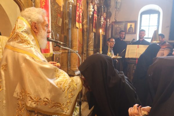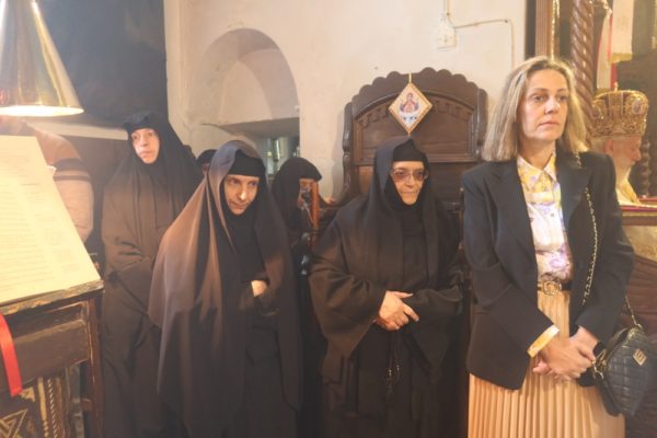Η Θεία Λειτουργία τελέστηκε με τη συλλειτουργική συμμετοχή Εφημερίων των πέριξ κωμοπόλεων και χωρίων, τη συνευχητική παρουσία της Ηγουμενευούσης Μοναχής Παρθενίας, των Αδελφών της ιεράς Μονής Μοναχής Παναρέτης και Μοναχής Ακυλίνας και των Μοναζουσών από την Ιερά Μονή Πανοράματος Θεσσαλονίκης, και με την παρουσία της Επάρχου Άνδρου κας Άννας Βρεττού, του Δημάρχου Άνδρου κ. Θεοδόση Σουσούδη, των Αντιδημάρχων κας Άννας Βολίκα και κ. Νικ. Βιδάλη, και πλήθους πιστών, οι οποίοι, παρά την κακοκαιρία, είχαν προσέλθει να συμμετάσχουν στην ενιαύσια πανήγυρι της Μονής.