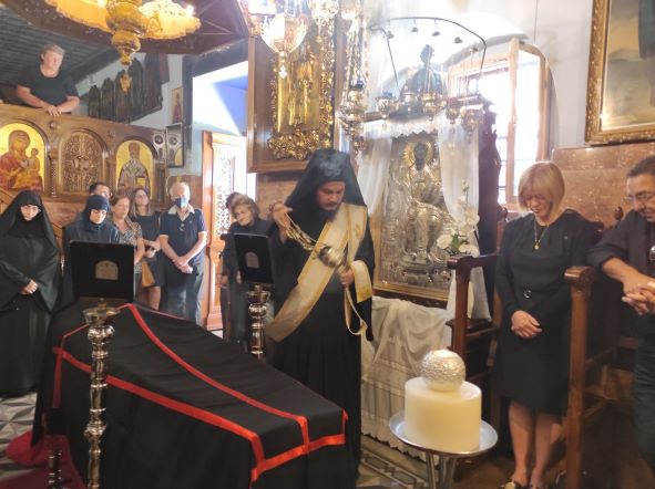 Ο Σεβασμιώτατος ολοκλήρωσε την ομιλία του ευχόμενος στην Γερόντισσα Φιλοθέη και την Ι. Αδελφότητα να ζήσουν έτη πολλά και να την θυμούνται!