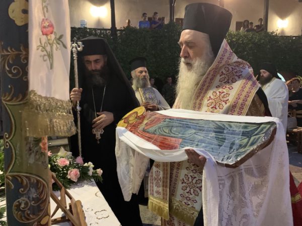 Τη Δευτέρα 22 Αυγούστου τελέσθηκε υπαίθριος πανηγυρικός Εσπερινός χοροστατούντος του Μητροπολίτη Σάμου και Ικαρίας κ. Ευσεβίου με την παρουσία πλήθους πιστών, ιερέων αλλά και του νέου Καθηγούμενου της Ιεράς Μονης. Εψάλησαν τα Εγκώμια της Παναγίας και έγινε η περιφορά του Επιταφίου γύρω από το Καθολικό της Ιεράς Μονής.