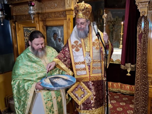 Προ της απολύσεως ο Σεβασμιώτατος Μητροπολίτης κ. Χρυσόστομος εκφράζοντας τις θερμές ευχαριστίες του προς τον Σεβασμιώτατο Μητροπολίτη Χαλκίδος κ. Χρυσόστομο για την παρεχόμενη άδεια ευχήθηκε και στον Καθηγούμενο της Ιεράς Μονής Πανοσ Αρχίμ Ιάκωβο για τα ονομαστήρια του.