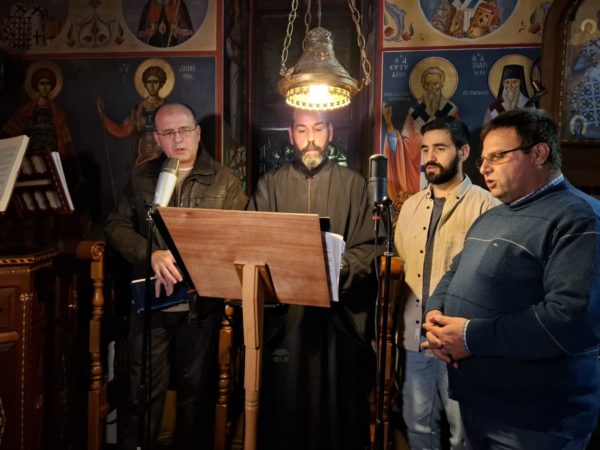 Τους ύμνους στην αγρυπνία επίσης απέδωσε ο Πρωτοψάλτης της Ιεράς Μονής κ. Ιωάννης Τεβεκέλης με την συμμετοχή και άλλων ιεροψαλτών.